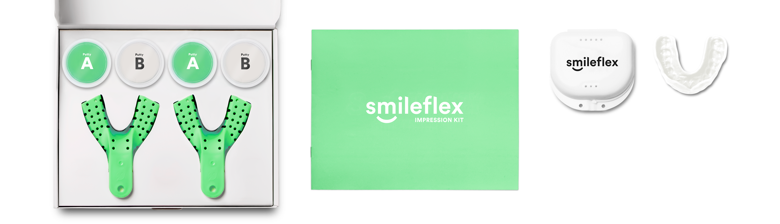 It's all about custom! Introducing the new and improved Smileflex impression kit, developed by dental professionals. Taking your impressions in the comfort of your home has never been easier!